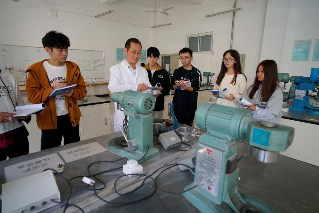 刘成老师上课习惯在教室里边走边讲,被同学们亲切地称为“转转老师”,这样他能关注到每一位学生的学习状态,可以与学生近距离的交流互动,避免学生上课走神。刘成的课堂轻松有趣,能把枯燥乏味的专业理论讲得浅显易懂又生动有趣。以水泥的生产为例,刘成用厨师做菜打比喻,首先需要备菜(生料制备),然后掌握好火候进行烹饪(熟料煅烧),最后加点鸡精和葱花提味、点缀(水泥制成)。“不同的厨师,手艺不同,同一道菜做出的味道肯定也不尽相同。”刘成认为,生活中很多事物道理是相通的,用我们常见的事物来类比和介绍不常见的、枯燥的知识就容易理解得多。