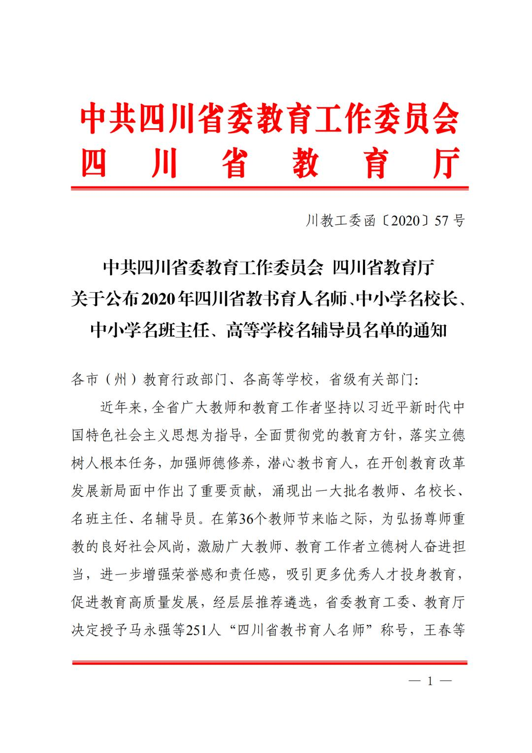 近日,四川省公布2020年教书育人名师、中小学名校长、中小学名班主任、高等学校名辅导员,绵阳职业技术学院材料工程系刘成老师当选四川省教书育人名师(双师型)。