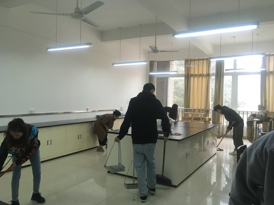 3月12日,在全系老师的带领下,我系组织学生对景观广场、四合院生产车间、材料大楼各实习实训室、办公室和学生寝室的清洁卫生进行了彻底的打扫。