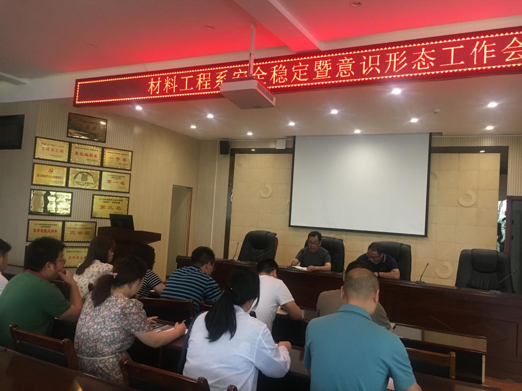 为认真落实上级有关部门和学校安全稳定暨意识形态工作会议精神,为隆重庆祝建党100周年营造安全、稳定、和谐的氛围。6月21日下午,材料工程系在材料大楼202会议室召开了2021年安全稳定暨意识形态工作会议。材料工程系主任杨峰、副主任贾陆军、各教研室主任、实训中心主任、工程中心主任、全体辅导员参加了本次会议。会议由材料工程系副主任贾陆军主持。