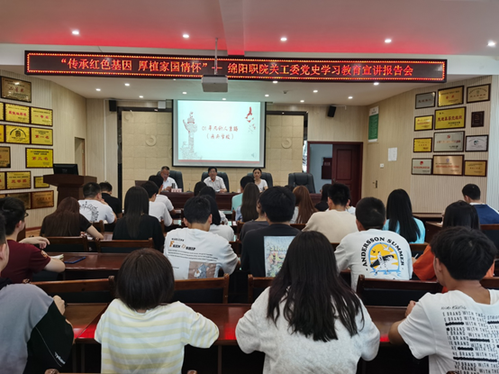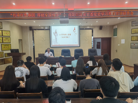 在即将迎来中国共产党成立100周年华诞之际,为深入扎实开展党史学习教育,引导青年学生当好红色基因的传承者、实践者,走好新时代的长征路,6月25日下午,学院关工委党史学习教育宣讲团在材料大楼202会议室举行了一场以“传承红色基因 厚植爱国情怀”为主题的党史学习教育宣讲活动。此次宣讲特邀学校离退休党总支第一党支部书记、绵阳市教体系统2021年优秀党务工作者、学校关工委党史学习教育宣讲团成员蒋进明老师到材料工程系做主题党史学习教育宣讲报告。学校离退休党总支副书记胡燕、材料工程系学生入党积极分子、各班团学干部代表等共计50余人参加了本次宣讲报告会,材料工程系党总支书记豆祎主持了本次活动。