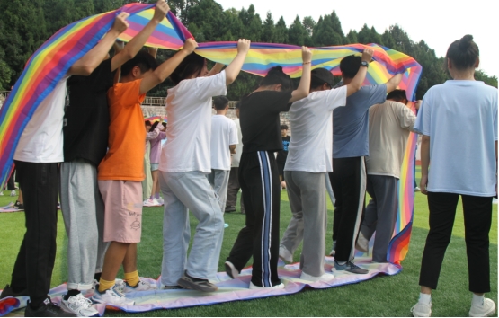 与其说这是一场团队游戏,不如说这是一场班级精神的建设,大家都打起十二分的精神小心翼翼的搭建着属于本班的成功之塔,我不知道他们之间有没有发生过小摩擦,但我知道此刻他们的心都一定凝聚在了一起,正所谓“人心齐,泰山移”相信在这次体验后,他们都能在这个温馨的“小家庭”里,感受到强烈的归属感。