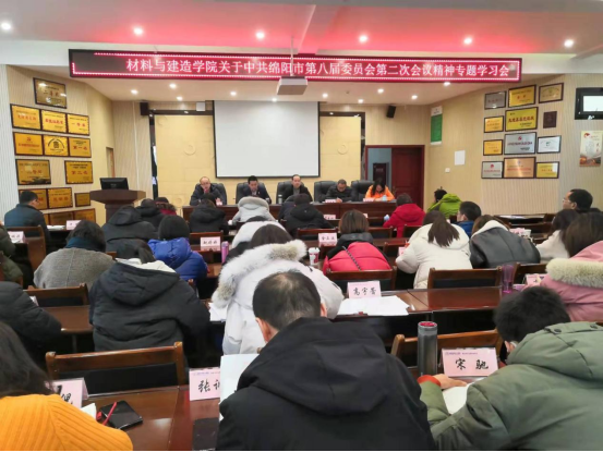 材料与建造学院于12月22日在材料大楼202会议室召开中国共产党绵阳市第八届委员会第二次全体会议精神专题学习会。材料与建造学院党总支书记伍志强、副院长(主持工作)贾陆军、党总支副书记张玺、副院长乔欢欢、副院长单荣华以及全体教职工参与了本次学习会,学院党总支书记伍志强主持并讲话。