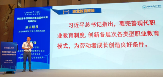 5月18日,我校建筑材料工程技术研发中心主任王启强应邀到第四届中国风电运维及回收利用高峰论坛作主题报告。并与参会的其他高校代表、行业企业代表共同探讨复合材料智能制造专业建设和产教融合示范基地建设工作。