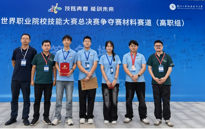 8月25日,2025年世界职业院校技能大赛总决赛材料赛道(高职组)圆满落幕。本届赛事以“技炫青春,能动未来”为主题,吸引全国28个省、70支队伍、252名选手同台竞技。我院教师刘侨、高峰指导的张漫、喻欣玲、王心椋、吴海涛团队凭借扎实的专业功底与创新设计斩获铜奖,实现历史性突破。