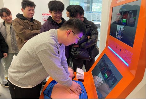 实训指导老师随后进行了系统培训,内容涵盖虚拟仿真技术操作步骤、灭火器使用"提、拔、握、压"四步法、逃生通道标识识别以及有序撤离"五不"原则(不惊慌、不拥挤、不贪财、不乘电梯、不返回)。老师还现场演示了心肺复苏和止血包扎等现场救助技能,强调在紧急情况下应遵循"先人员、后物资,先重点、后一般"的处置原则。